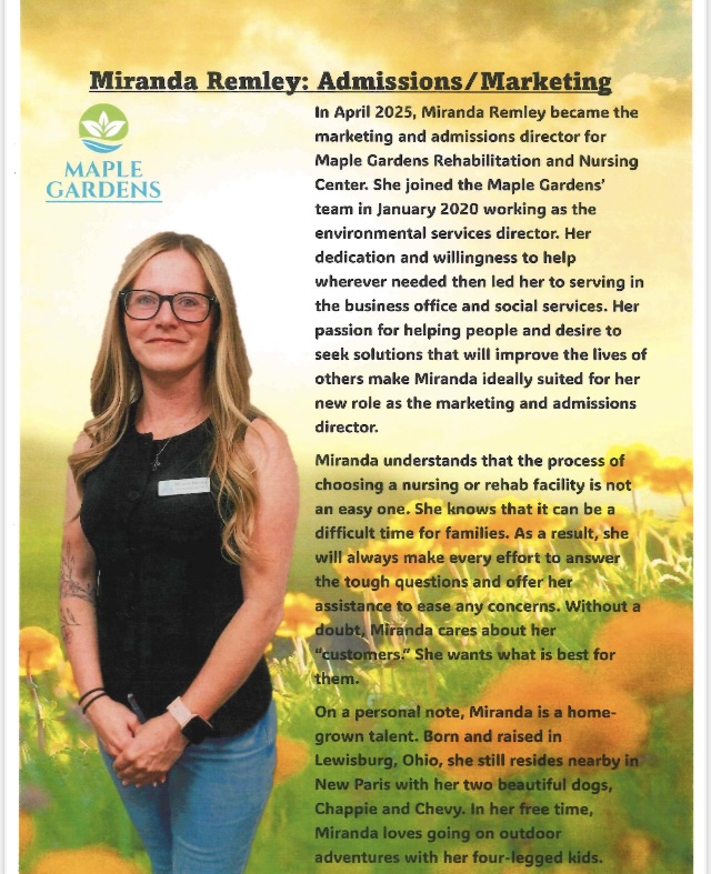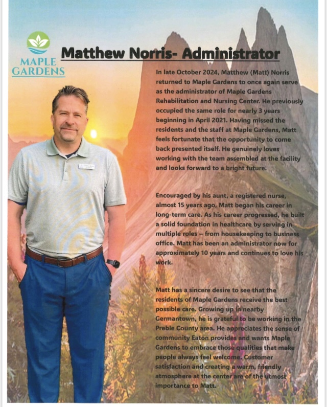 At Maple Gardens Rehabilitation and Nursing Center, we are constantly striving towards meeting the total needs of each person who comes to us. Our nurturing environment and home-like atmosphere create an optimal setting to strengthen and heal. Our team focuses on the needs of each resident and builds an individualized plan of care to promote the fullest extent of health and wellbeing. We provide quality and compassionate care to those in need and work towards meeting the changing health care priorities of the community through the development of specialized programs and services. We do all this because we genuinely care about the individuals who put their trust in us, and we do whatever we can to assist in healing and improving quality of life.